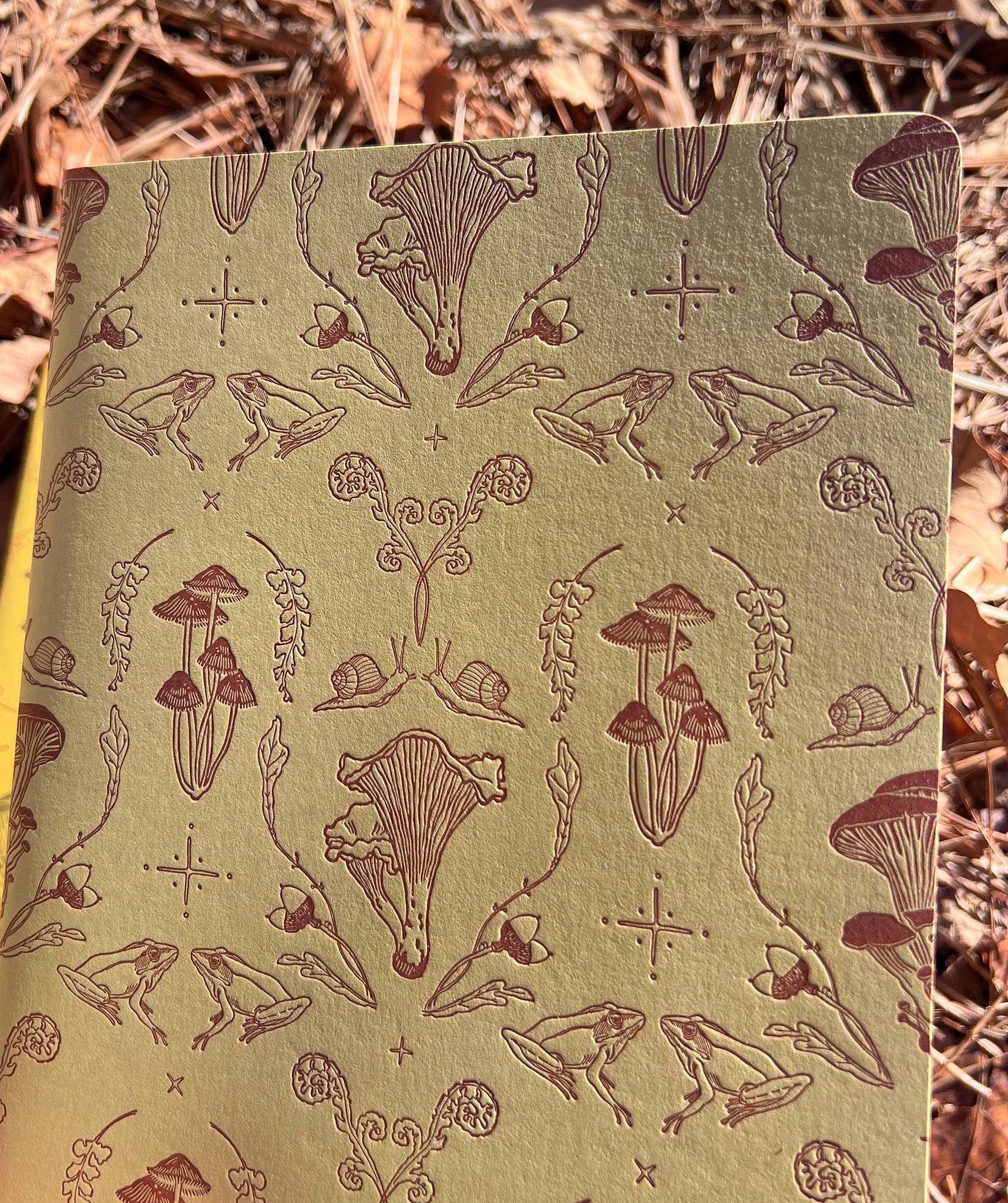 • cover is letterpress printed in rust ink with original illustration & linocuts on dark straw 100# paper