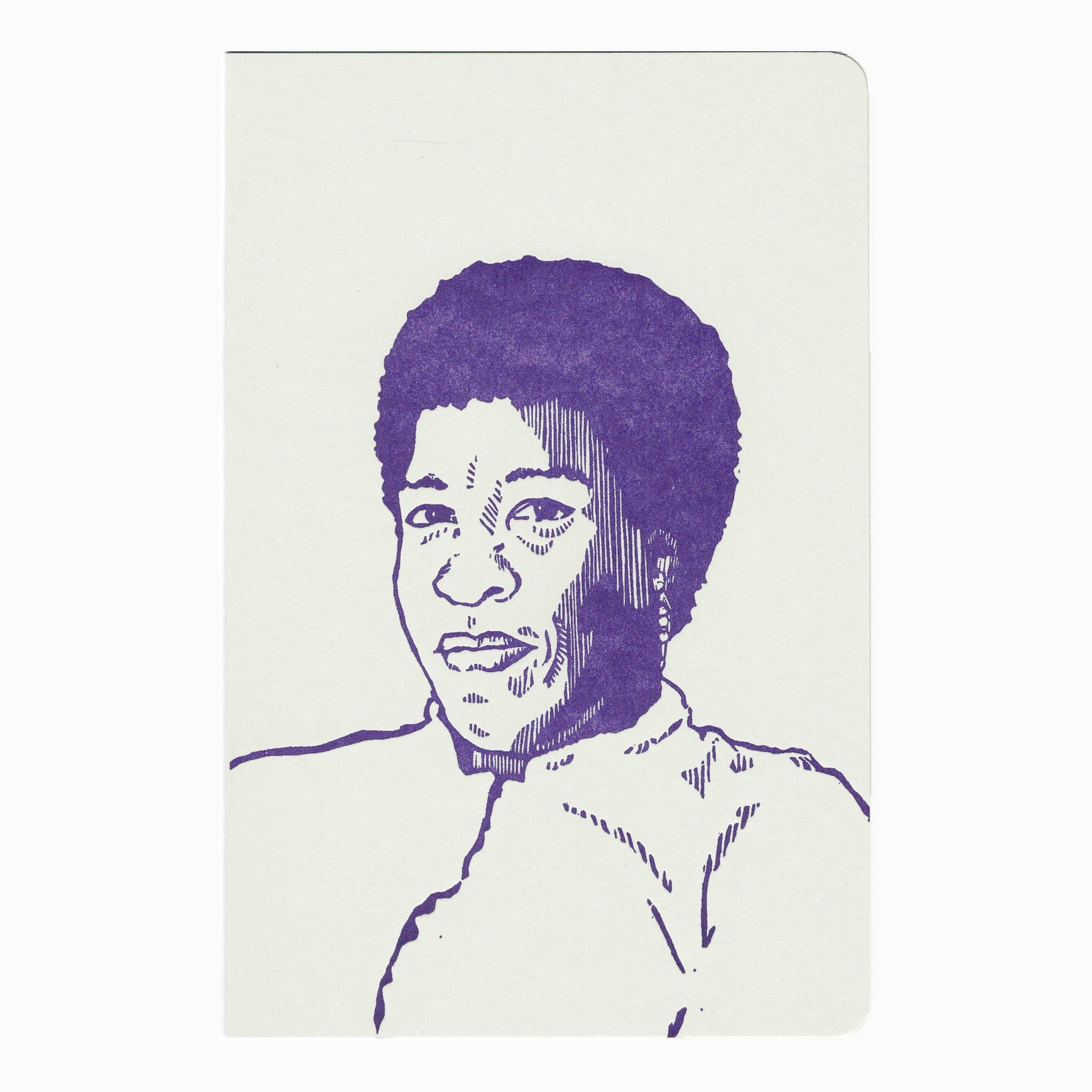 • Large size notebook• cover is letterpress printed in blue violet ink with original linocut illustration on 100# grout gray paper• 72 blank 100% recycled pages• interior is perfect bound on the left, then glued and finished in our studio• measures 4.5”x7” with two rounded corners and packaged in a cello sleeve