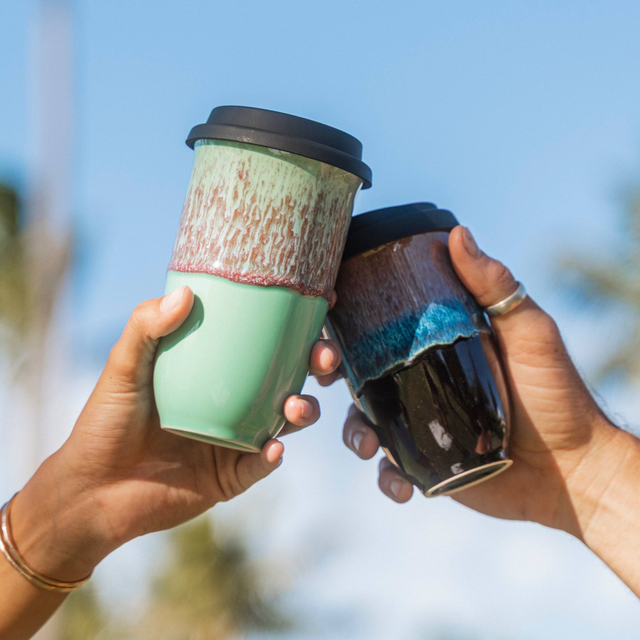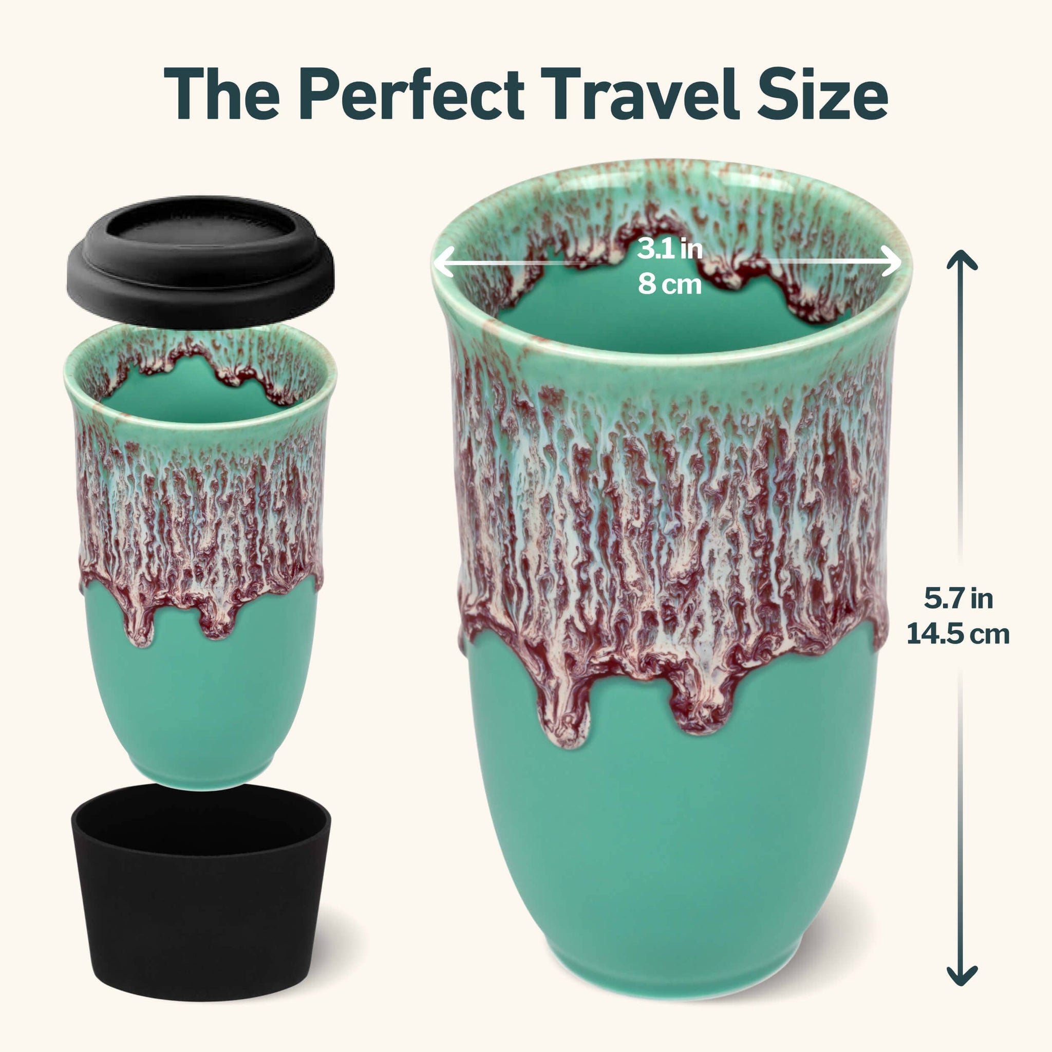 Bring a cosmic spark to your coffee ritual with the Nebula 16oz Ceramic Mug. A swirling blend of light blue and lavender purple evokes the ethereal beauty of nebulae in the night sky. Each mug is handcrafted with our custom glazing method, making every piece one of a kind. Made from high-quality stoneware ceramic, it offers a pure, clean-tasting sip without plastic or metallic flavors. The BPA-free silicone lid and heat-resistant sleeve make it perfect for your daily commute or cozy moments at home. Designed to fit standard cup holders and most home brewers. • Capacity: 16oz / 475ml • Size: 5.7 x 3.2 in / 14.5 x 8.1 cm • Microwave & dishwasher safe •