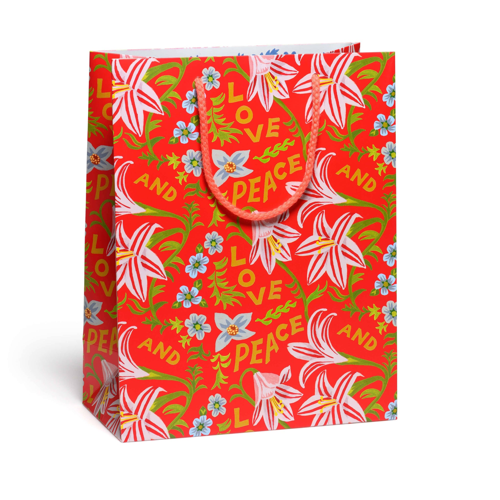 Red Cap Cards - Peace and Love Amaryllis gift bags: Medium